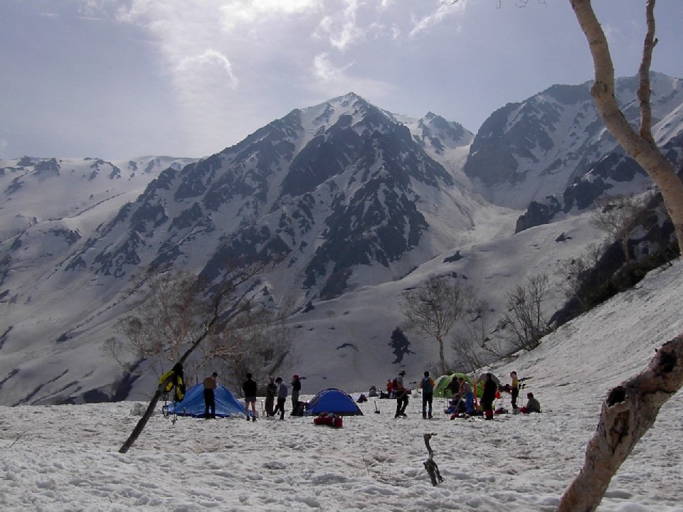 馬尻への道を分け登っていくと、台地状にはたくさんテントが張ってあった。