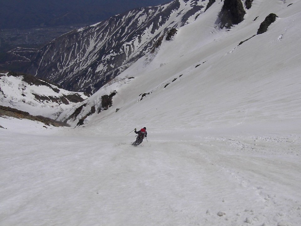 下りは快適であっという間に滑り降りた。広大な斜面に誰もいない。