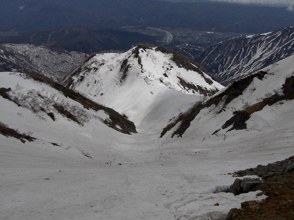 鑓沢は何とか頂上から滑れるみたいであったが、杓子沢は鑓の頂上からはつながって