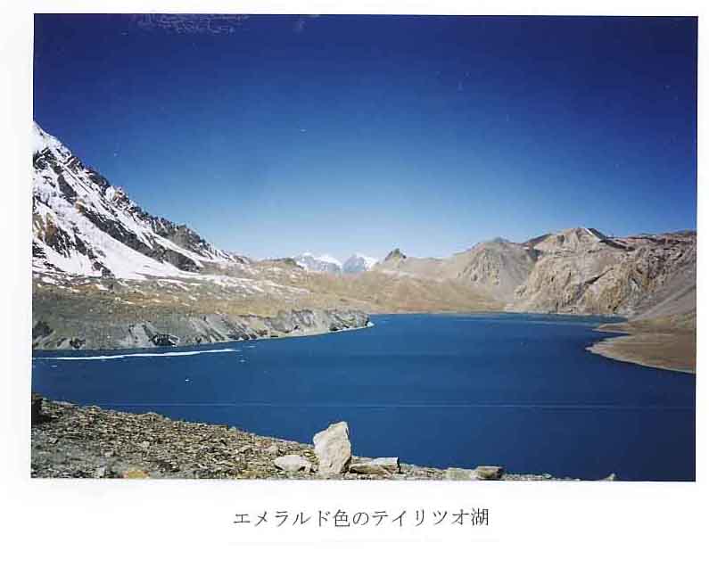 何度も何度も、アンナプルナ4峰の方を振り返りながら、マナン部落に着いた。1953年のマナスル隊の学術班としてマナンを訪れた川喜多二郎さんは、油断も隙もないチベット人の村として、その著「ネパール王国探検記」でマナンを紹介されているが、今のマナンは沢山のロッジが建ち並びアンナプルナ一周トレッキングの最大の中心的村として、欧米人が毎日大勢出入りする明るい村である。マナンで1週間分の疲れを落とす休養日をとった後、10月21日より3日間かけて高度順応を兼ねてテイリツオ東峠5000m迄のハイキングに出かけた。アンナプルナ1峰の初登頂をしたモーリス・エルゾークがアンナプルナ1峰攻撃の前に、カリガンダキよりテイリツオ西峠に登り、テイリツオ湖を渡って東峠に至りマナン迄おりる偵察行を行っている。アンナプルナ1峰がテイリツオ湖の上のグランド・バリエールに存在しないことを確認してから、ミリステイ・コーラからの本格的な攻撃を始めた事が、「処女峰アンナプルナ」に詳しく書かれている。カンサール村からテイリツオ東峠へは、息を飲むような素晴らしい景観の連続であった。エルゾークがグランド・バリエールと名付けた数キロにわたる氷の大障壁、ロック・ノアール7485mがその真ん中にどっしりと構え、西端をテイリツオ・ピーク7134mが締めくくっている。又、4200m近辺から東の方を振り返ると、マナスル三山、ピサン・ピーク、そして北方の山々の一大パノラマが楽しめた。5000mのテイリツオ東峠に着くと、その下にエメラルド色の大きなテイリツオ湖が輝いており、感嘆の声を上げる。こんな美しい景色を眺めながら、テイリツオ・ピークを登られた薬師義美さん達はさぞ、楽しかったことであろう。テイリツオ東峠へのベース・キャンプとして4000mの谷間で日本から持参したテントで幕営したが、そこには大きなロッジ建っておりびっくりさせられた。
