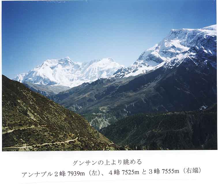テイルマン著「ネパール・ヒマラヤ」と今西錦司さんの「ヒマラヤを語る」は、私達の青春時代にはヒマラヤ登山へのバイブル的書物であった。1950年にテイルマンがアンナプルナ4峰7525mをめざしたが、7300m地点で断念。その記録をもとに、マナスル偵察隊の今西錦司さん達が1952年にテイルマンと同じサブジイチューからアンナプルナ4峰を5800m迄試登した。翌年の1953年秋に、AACKが初めてのヒマラヤ登山として、アンナプルナ2峰7939mを南面から登ろうと遠征隊を出すが、2峰の南面は険峻な岩壁と氷壁にガードされ可能な登路が見いだせず、急遽北面に転身。前年今西錦司さん達が偵察したアンナプルナ4峰7525mの攻撃を始めるが、時既に遅く頂上を目前にした7100mで冬の悪天に遭遇し、今西壽雄隊長と藤平正夫さんは最終テントも烈風で破られ、痛恨の撤退を余儀なくされた。私達が京大山岳部の現役時代に、アンナプルナ遠征隊の隊員であった脇坂誠ザッカス先輩から笹ヶ峰ヒュッテで何度も聞かされた懐かしい話である。数年前にアンナプルナ内院からカリガンダキを歩いた時に、アンナプルナ連山の南面は十分眺めてきたが、アンナプルナ北面は私にとって未知の憧れの山域であった。
