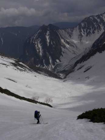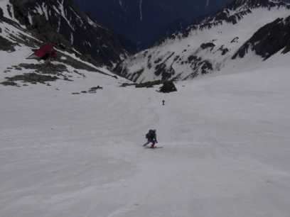 槍沢へ滑り込み、槍を目指してひたすら登る。