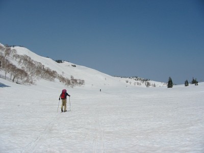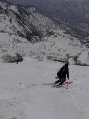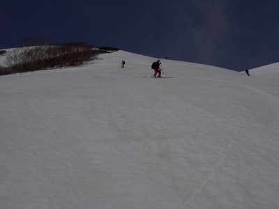 コルからの斜面を滑る。