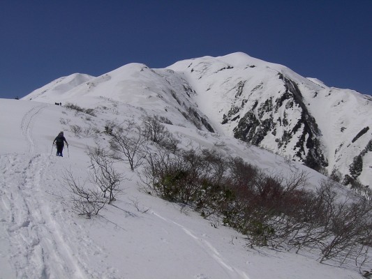 駒ケ岳にはたくさんの山スキーヤーが来ていたが、滝ハナに滑り降りたのは我々だけだった。