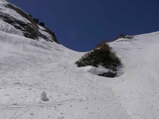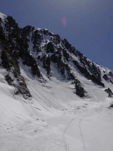 上部は快適な斜面でしたが昨日降った雪が腐って雪崩れた。