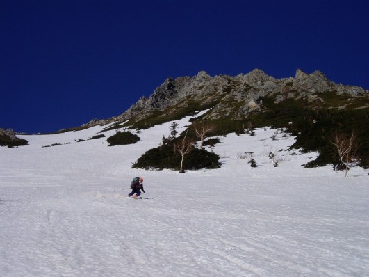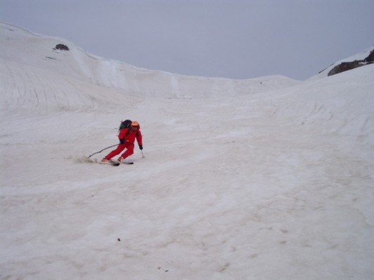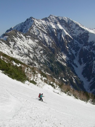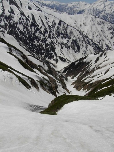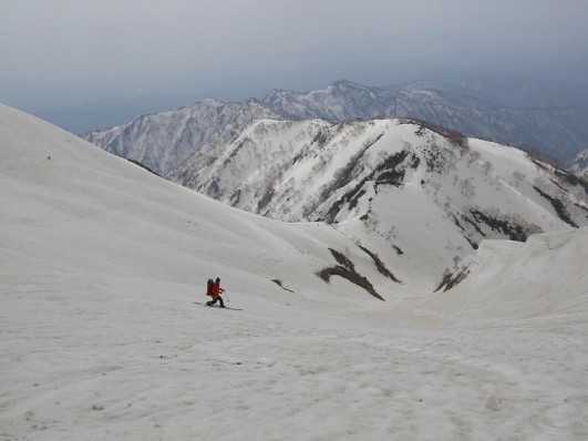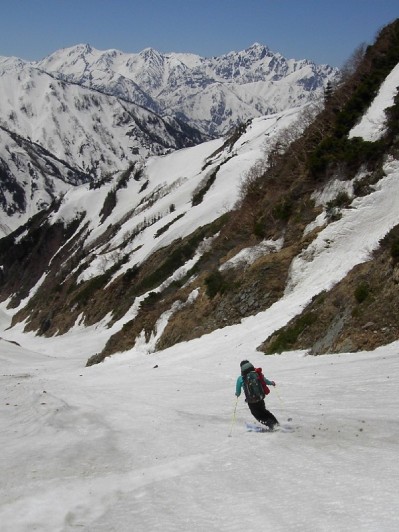 餓鬼谷、五龍岳南面、シラタケ沢はいずれも素晴らしい斜面で傾斜、広さ、雪質いずれも満足のいくものでした。スピードに乗ったターンで良い滑りができました。