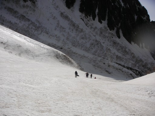 槍沢ロッヂ(7:00)⇒槍沢⇒天狗原(9:40)⇒横尾尾根コル(10:30)⇒横尾谷右俣滑降⇒本谷橋(11:30)⇒涸沢小屋(13:30)