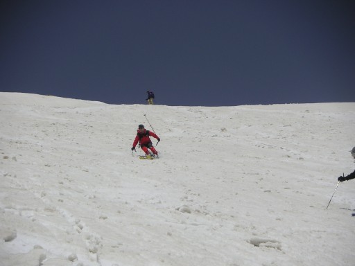 涸沢小屋(6:10)⇒白出のコル(8:00)⇒奥穂高岳(9:30)⇒白出のコル(10:10)⇒白出沢滑降開始(10:45)⇒白出大滝高捲き(11:00)⇒天狗沢出合(11:30)⇒蒲田川林道(12:30)⇒新穂高温泉(14:10)