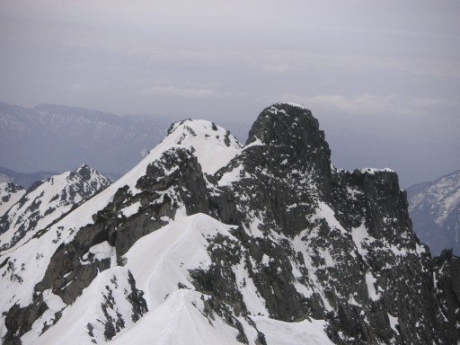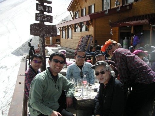朝から好天に恵まれ、槍沢は登山者が繋がっている。2400m辺りから上部は風が時折強く吹くがそれも次第に収まった。天狗原〜横尾尾根の乗越からは、槍ヶ岳が美しく、穂高連峰にかけてのパノラマが素晴らしい。横尾谷右俣は全く踏まれていない斜面で北穂を横目に見ながら滑りを満喫。横尾本谷も大きなデブリなく順調に滑走。涸沢の登りは、夏山と変わらぬ登山者の数珠繋ぎ状態であった。涸沢の県警詰所にて昨日の遭難者が朝、県警ヘリにより遺体で発見されたことを知る。涸沢小屋に投宿し、テラスで前穂北尾根を見ながら生ビールで献杯。