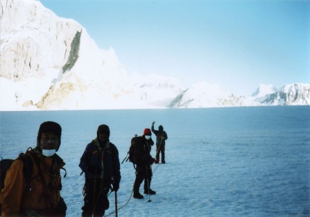 行き先は、世界で4番目に長いといわれるビアフォー氷河からスノーレイクにいたり、ヒスパー・パス5,151mを越えて、世界で5番目に長いヒスパー氷河をおりて、フンザまで歩くという、約120km強の氷河の山旅。