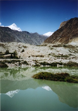 ユトマル氷河の出合いからは、1979年に北海道山岳連盟隊が初登頂したプマリ・チッシュ7,492mの秀峰が望まれた。