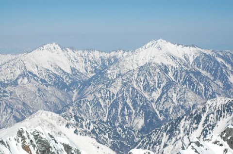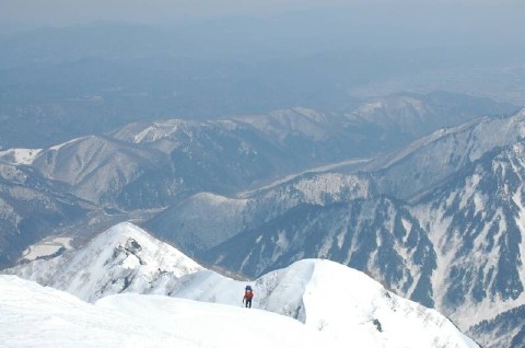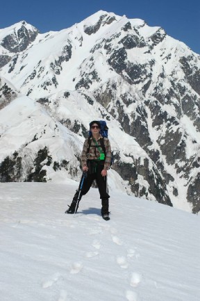 信濃大町で関東組と無事合流。タクシーで大谷原へ(約4800円)。東尾根は、適度に雪が締まっており、かつて冬に登った時に比べてはるかに行程がはかどる。第一岩峰は特にザイルを張る必要性もない。第二岩峰は、ワンポイントのみ困難。空身&ザックつり上げで対処。吊尾根のコルに幕を張る。