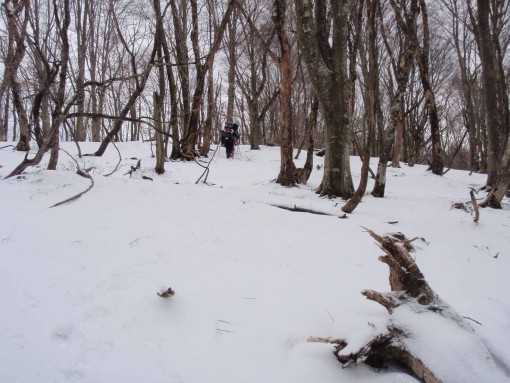 桜谷山への広いブナ林の尾根