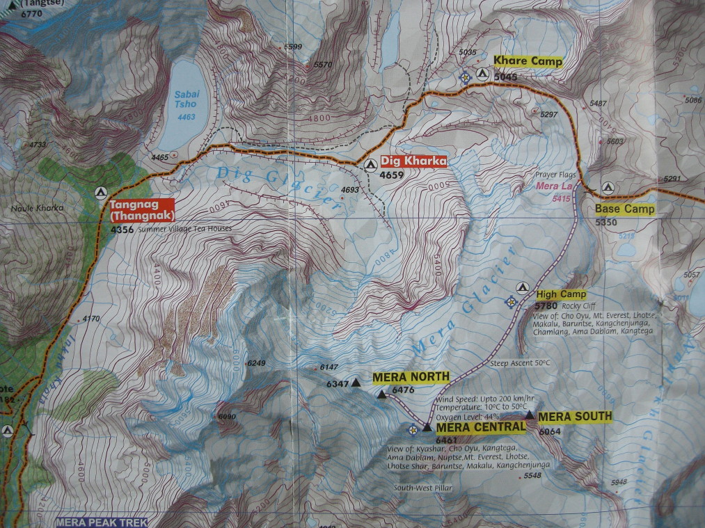 ネパールにはトレッキングピークとして65百米以下の山が33座あり選択幅が広い。高所で岩登りのない所、普通の人より3割方のろいので最終キャンプから9時間くらいで登頂して帰れるところでないと暗くなって危険と思い探したところ メラピーク(6461m)が浮上した。リーダーに泉谷洋光(64年入部 65歳 イッセキ)が参加してくれ実現の運びになった。