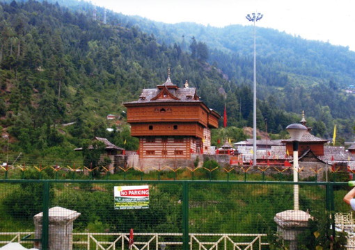 英領時代は夏の首都となっていた丘の上の町Shimlaから、サトレジ河のRampurまで、標高1,000m以上のつづら折りの急坂を下る。カーブが余りにも多いので, 村上さんと私は車酔い。サトレジ河には、あちこちに水力発電所が目立った。Jyoriと言う町より標高550m程上がったSarahan に午後2時10分到着。Hotel Srikhand の近くの、ヒンズー教の寺院「ビーマ・カリー」に参拝。インドには珍しい木造建築の珍しい寺院であった。