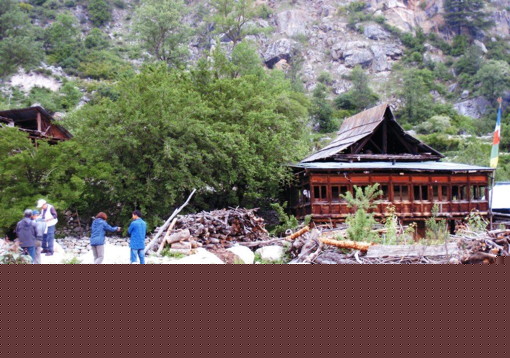 SagnamはPin Riverの左股・右股の合流点にある、開けた明るい台地の村だ。チベット民家に宿をとったが、2階に客室があり、大きなトイレには水道がまったくでず、トイレ前の200リッターのプラスチック・タンクからその都度バケツに水をくんで、1回ずつ排水をせねばならないという、大変不便な民宿であった。勿論、シャワーも使えず、洗面も使用不可能な状態で、驚きの民宿であった。女性の小林さんには、大変だったであろう。