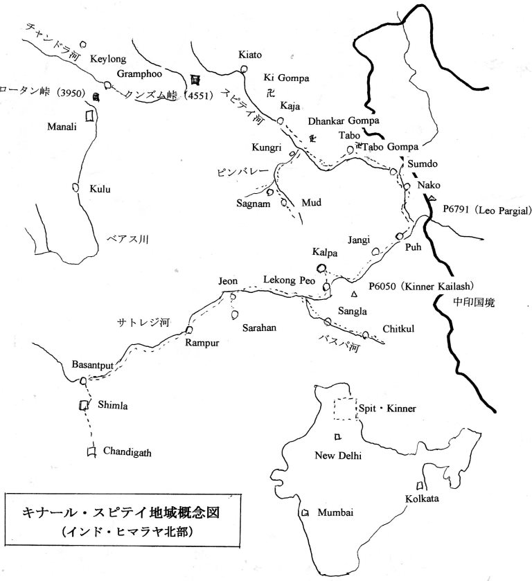 スピテイ山群はラダック山群のすぐ南隣にあり、キナール山群はそのスピテイ山群の真南に位置する。