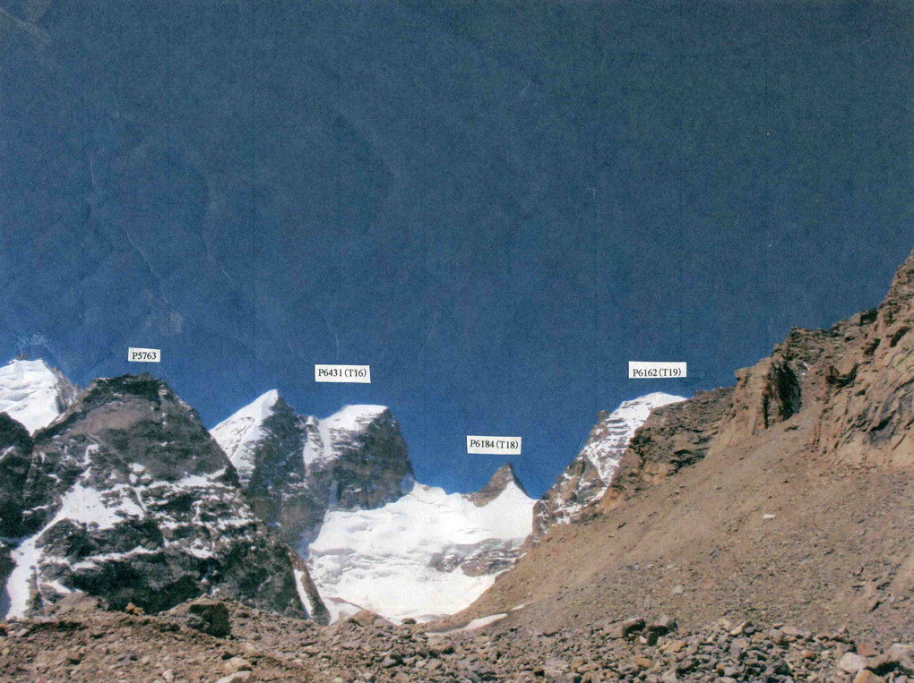 「登山史」いずれの山も未踏峰。日本山岳会学生部隊がP6165 (L10)登頂後、P6045 (L11)に試登したが、登頂は出来なかった。