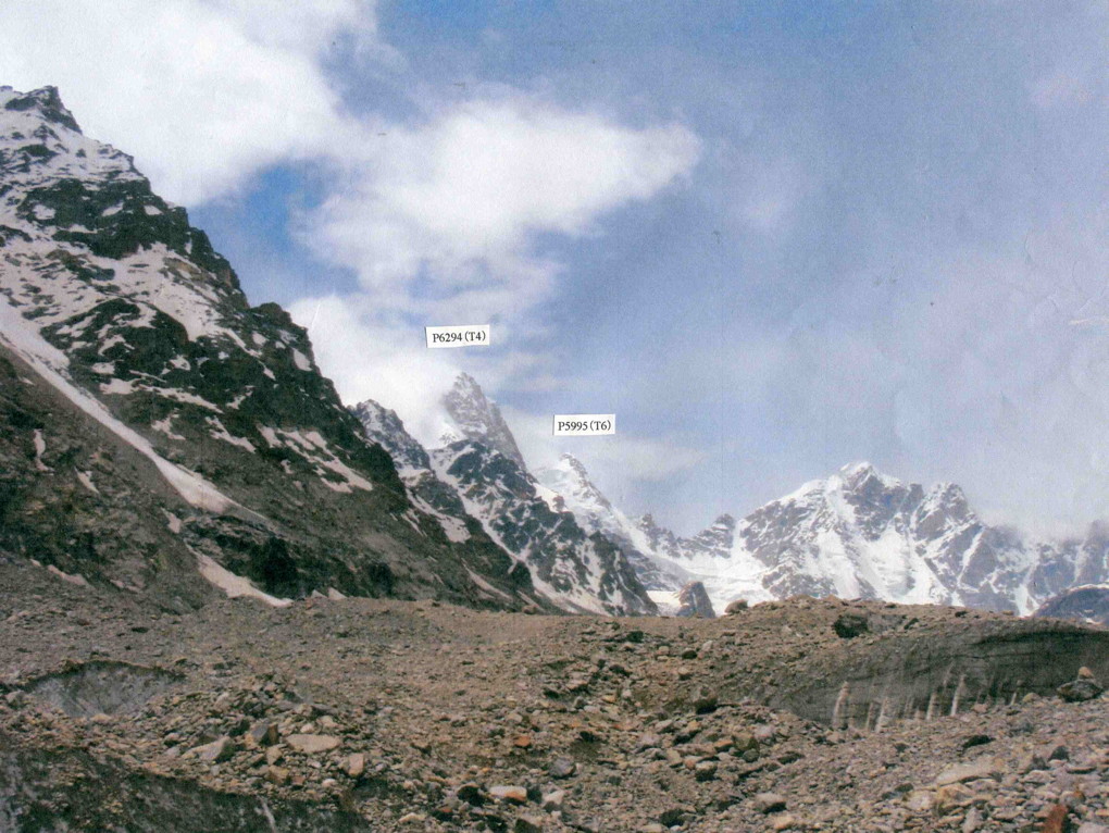 「登山史」P6008(R24)は、2011年にスイス隊がカトカル谷右氷河より初登頂した。他の2峰P6100(R20)及びP6128(R25)は未踏峰である。