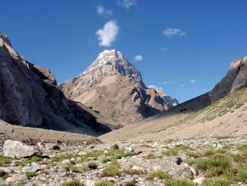 「山容と地形」カトカル谷の右氷河奥にある山。