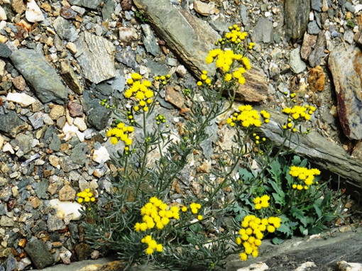 小さな野草の花があちこちに見られだし、湿原地に咲く黄色い花の群れが見事であった。ツオー・モリリの大きな湖は終わり、緑の大平原と湿地帯が果てしなく続く。直ぐそこに見える支尾根の麓にも、なかなか行き着かなかった。