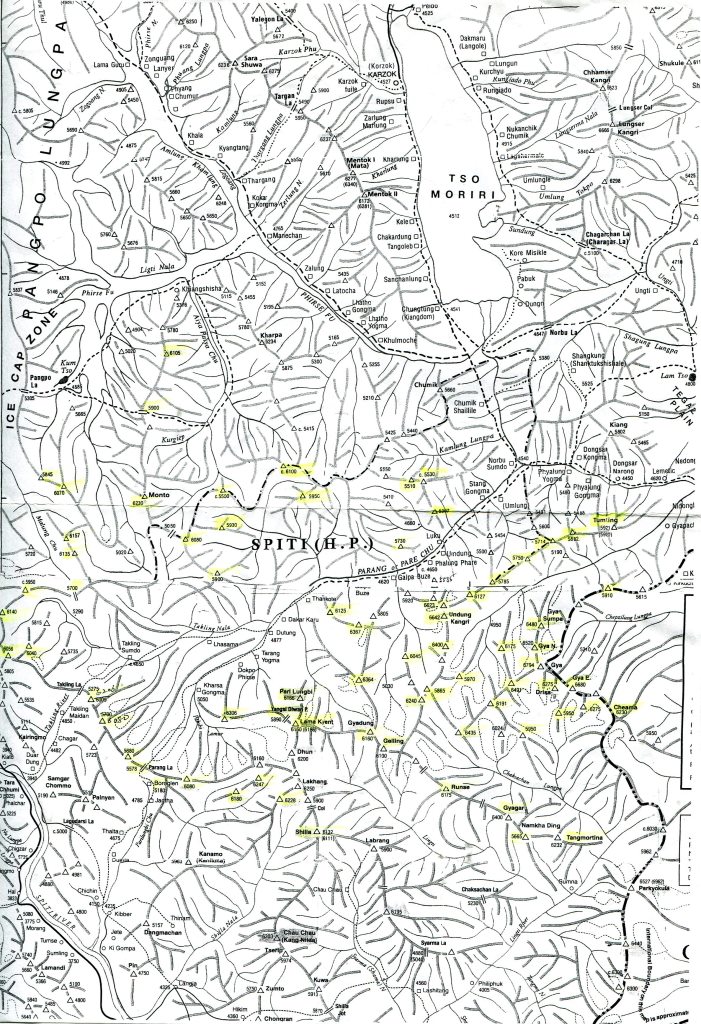 2014年夏に、キナール山域からスピテイ山域ヘ未踏峰の探査に出かけたが、2015年はスピテイの北にあるラダック最南部のツオー・モリリ湖から、スピテイとの稜線に源を持つParang Chu 谷を遡行して、この谷周辺部の未踏峰探査を計画した。この山域にも、未だまだ知られざる6000m台の未踏がかなり沢山手つかずで残されている。