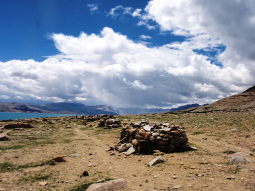 Polokongka 峠からSumdo Gongmaにおり、ツオー・モリリに向かうつづら折れの立派な舗装道路を30分ほど車で上がると、大きなケルンが積まれたNamkshang La峠(又の名はNusgar La)だ。峠から一段おりると、ツオー・モリリの手前にある小さな湖のKyogar Tsoに降り立つ。
