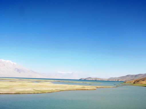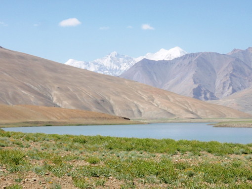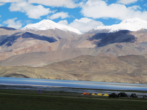 Karzok村の東に広がるツオー・モリリ湖は、澄み切った青い水が広がる素晴らしい景観の湖である。大きなケルンがあって展望台になっているZalung迄は車道がついている。青々としたツオー・モリリ湖の東岸には、1995年にインドHimalayan ClubのHaris Kapadiaさん達によって初登頂されたこの山域で最も高いLungser Kangri (6666m)とChhamser Kangri (6623m)が聳える。馬方達の話では、Lungser Kangriの麓にインド軍の駐屯所が出来たため、2年前からこの2山への外国人の登山は禁止になっていると言う。