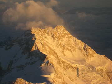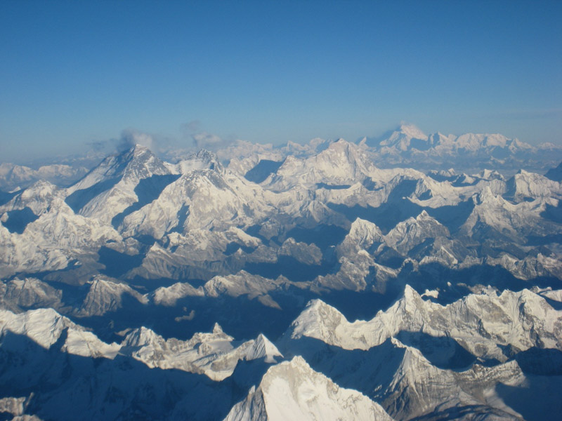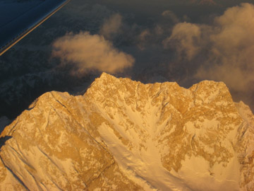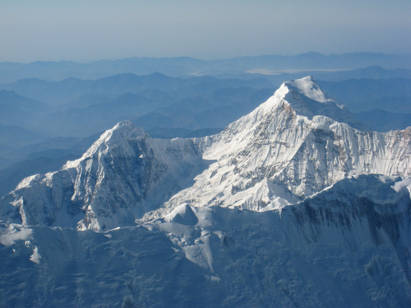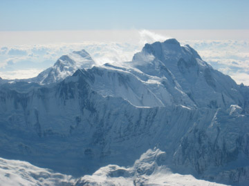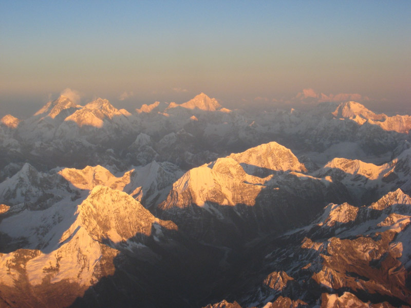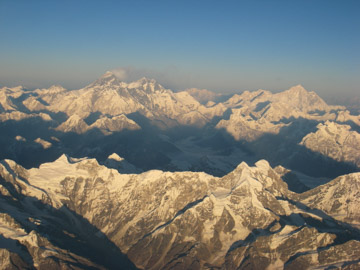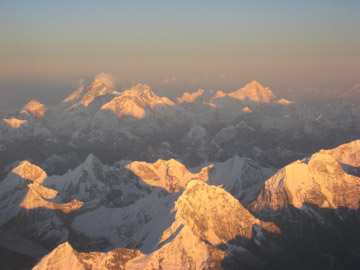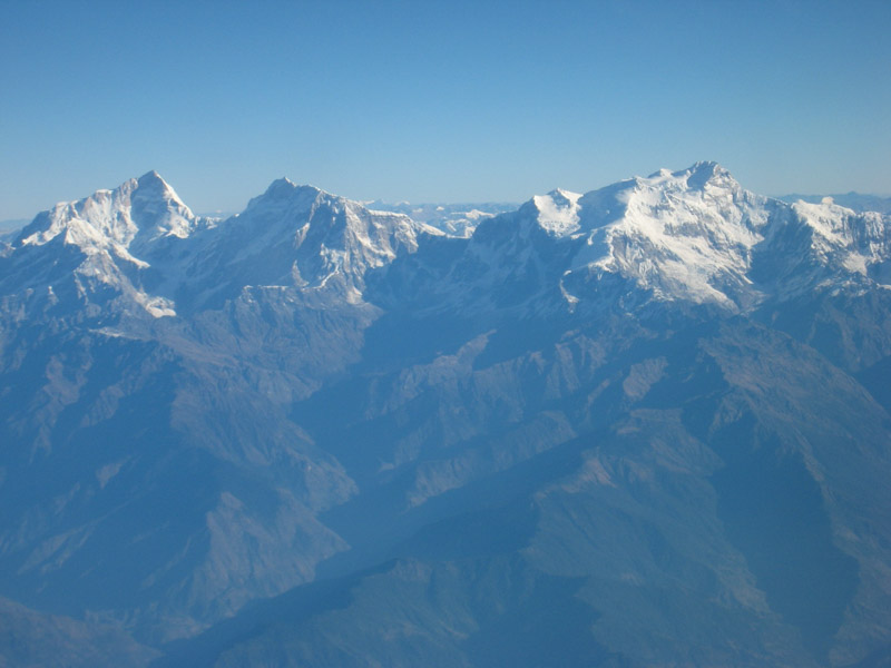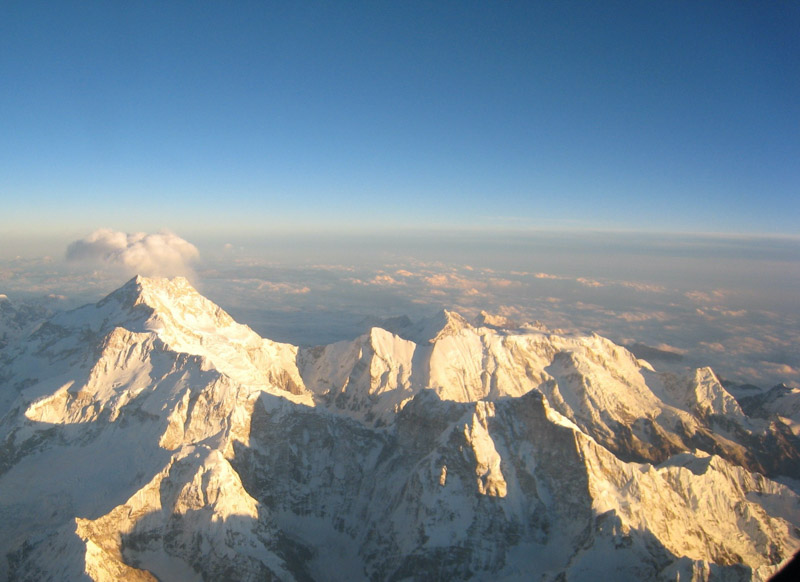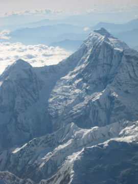 飛行中は研究目的の撮影の合間に、わたしは自分のポケット・カメラ(キャノン IXY 900 IS)でも撮影した。20才台の始めと終わりに登ったアンナプルナ南峰(ガネッシュ)とヤルン・カン(カンチェンジュンガ西峰)に思い入れがあったからだ。ここではそれらの、夕暮れまで飛んで撮った写真を紹介する(撮影 上田 豊 名古屋大学)。
