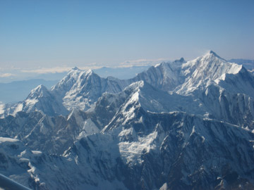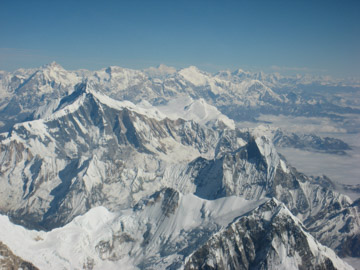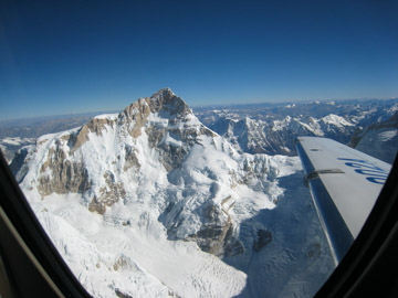 ネパール・ヒマラヤの空撮が2007年11月下旬から12月初旬にかけて、朝日新聞社の小型ジェット機で行われた。地球温暖化のもとで変化するヒマラヤの氷河の変動をとらえるためで、同社(武田剛カメラマン)と名古屋大学の雪氷圏研究室(藤田耕史)との共同企画だ。名大の研究室には1970年代にネパールで飛行機をチャーターして撮影した氷河の写真が約1万3千枚ある。それらの写真と比較研究することが、この空撮の目玉であった。