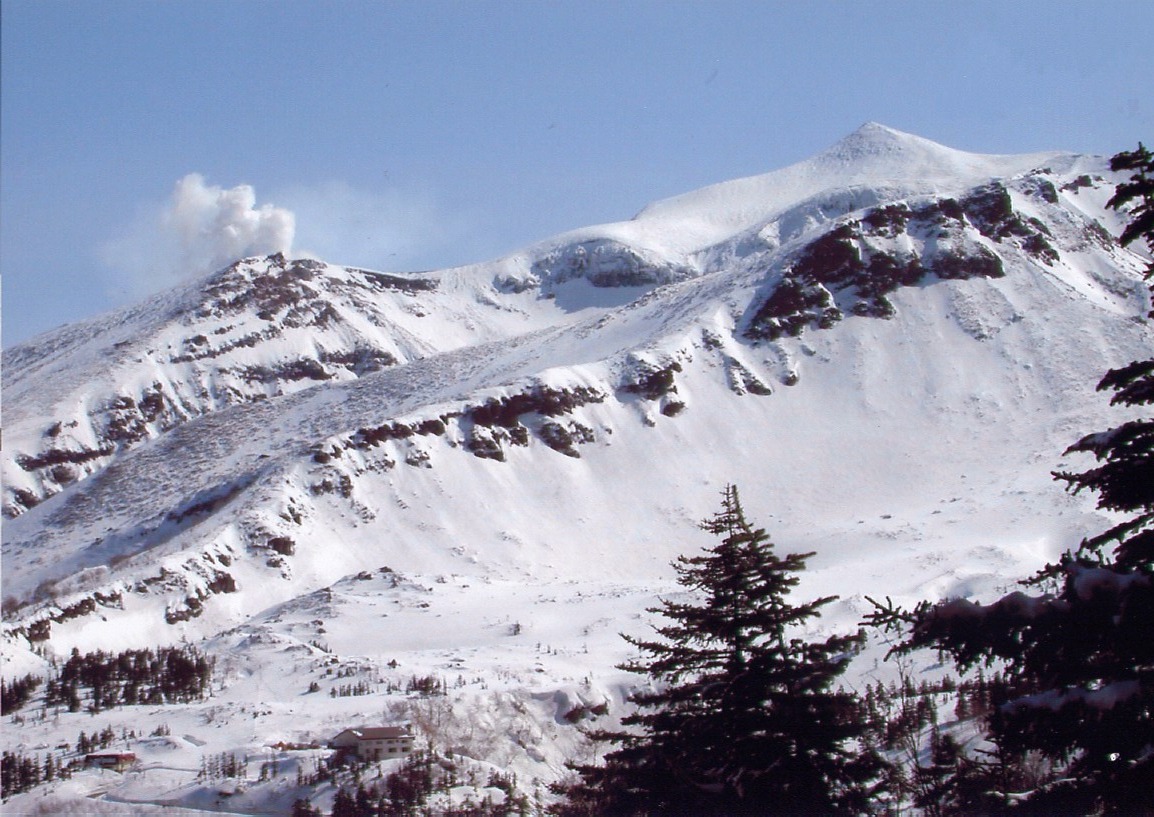 (撮影 藤野和男氏)右奥が十勝岳 2077m、左は前十勝噴煙