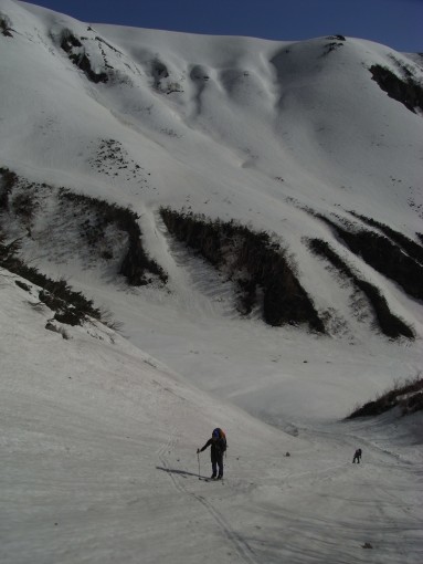 ヌクイ谷からの登リ。背後は昨日滑った斜面