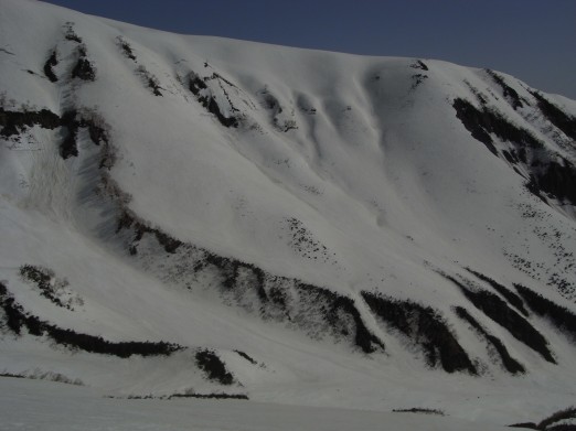 五色が原から滑った斜面(右端の尾根状)