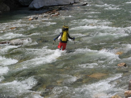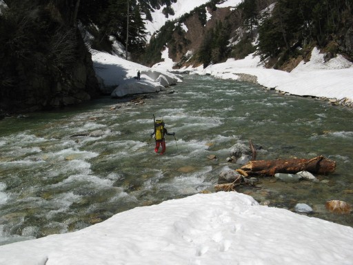 黒部川を渡渉するマッコー