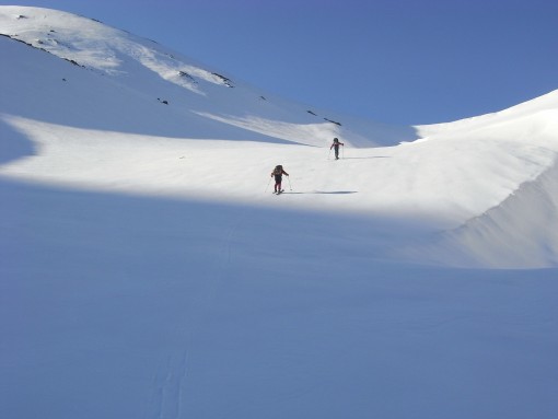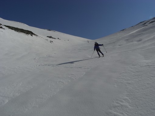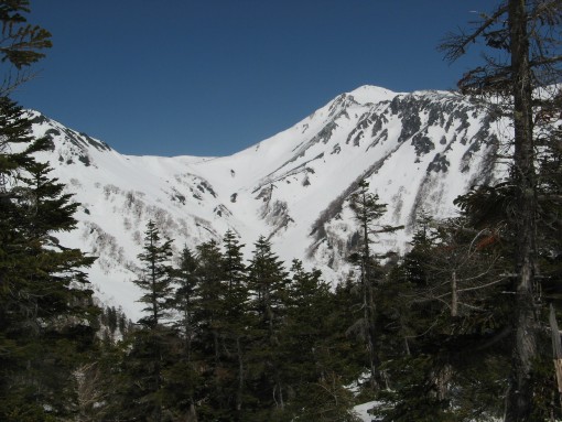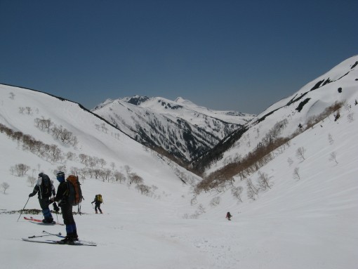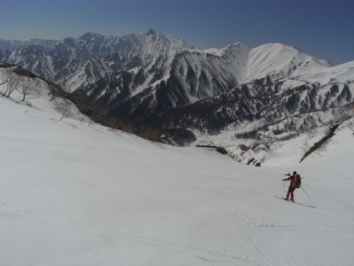 槍をめがけて樅沢を滑る田中