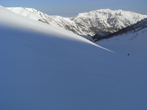双六谷を滑る